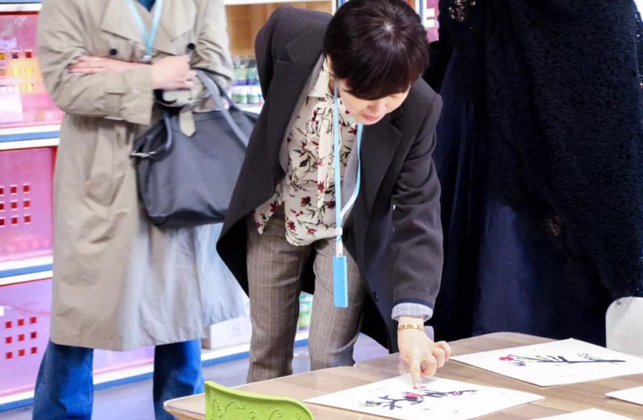 在參觀中,安董事長了解到中國孩子的在園課程、活動是根據(jù)不同年齡孩子的身心發(fā)展特點而設置,園所重視孩子的創(chuàng)造力發(fā)展,鼓勵孩子自我表達。她非常喜愛孩子們在美術課堂創(chuàng)作出的作品,并對園所老師利用廢舊再生材料,布置豐富多彩的班級、園所環(huán)創(chuàng),表示了由衷的欽佩。